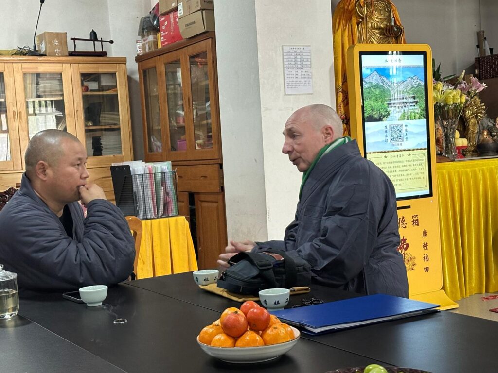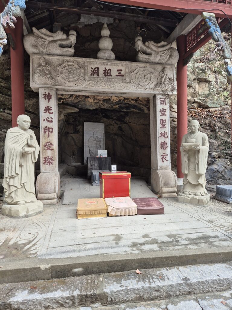 Tempel van de 2e zen patriarchIn gesprek met de abt van de tempel van de 2e patriarchHuike zonder linkerarmKado voor monnikAnnie Zheng YiOntbijtje voor we op pad gaanGrot waar Sengcan mediteerde en transmissie gaf aan DaoxinRelikwieën van Daoxin (4e patriarch) Plek om na het eten zelf je kommetje af te wassenEetzaal Rondleiding door hoofdmonnikHartelijk ontvangst door de abt van de tempelStupa van de 4e patriarchZendoDipankara, Shakyamuni, Maiytreya en Mahakashapa en AnandaWuzhu tempelBeeld van Hongren (5e patriarch)Relikwieën van HongrenGang waar beroemde gedichten op de muur werden geschrevenRijststamper van Huineng (6e patriarch)Laozu tempelWuzhenMet een bootje op het waterAnnie bij WestlakeBezoek aan theeplantage